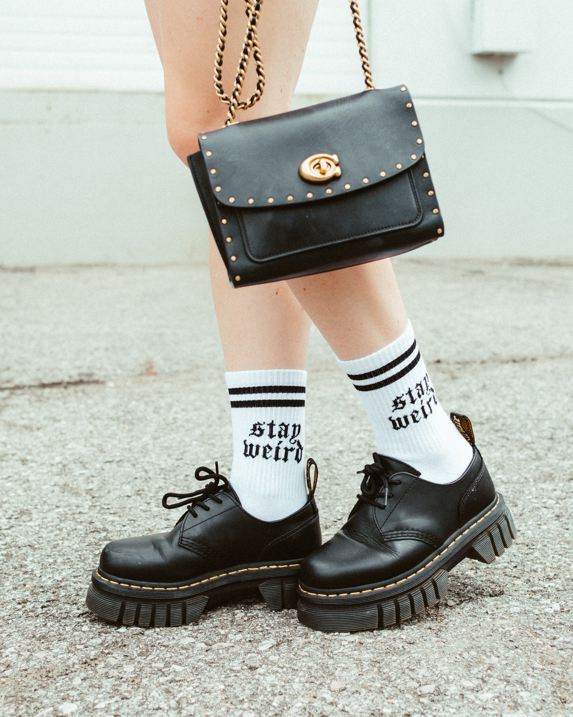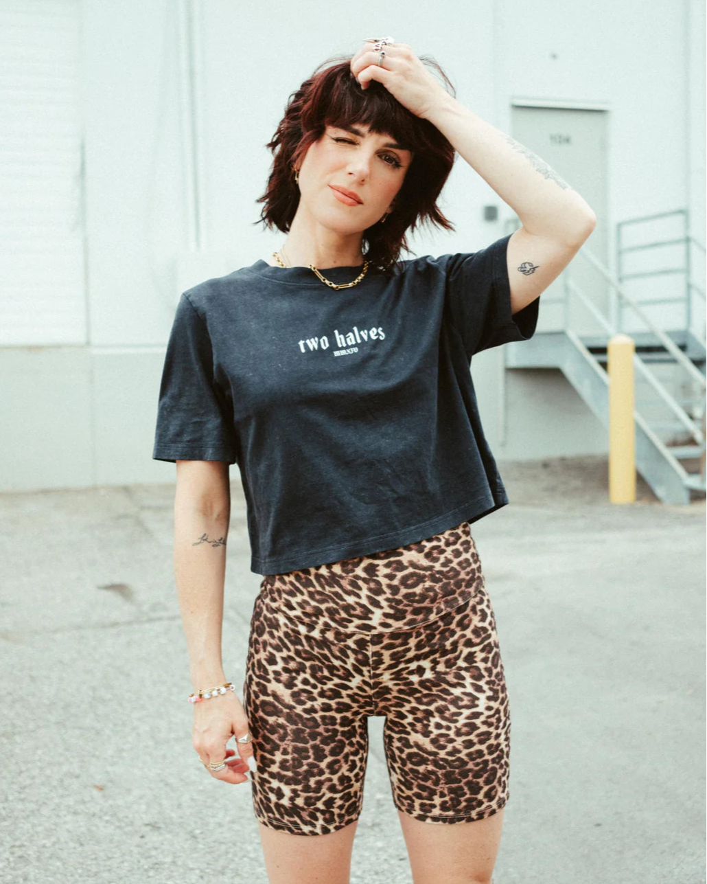 Pairing our boxy, cropped Numerals Tee, Ribbed Cotton Bike Shorts and Stay Weird Socks for a head-to-toe look perfect for lounging, running around town or heading to your next gig.